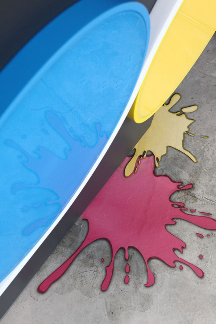 Kellydruck ist eine junge Druckerei aus Abensberg. Die Gestaltung der Verkaufstheke durch Harnest sieht einen Tisch vor, der wie ein Papier durch die Druckwalzen läuft. Wir haben das mit Corian umgesetzt, der natürlich nicht gewalzt, sondern thermisch verformt ist und so die schwungvolle Kurve des »Papiers« zum Besprechungstisch vorgibt.